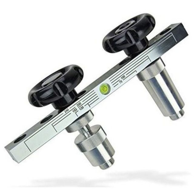 En aluminium massif. Avec une fiole centrale. 4 positions de pointage à gauche et à droite. Avec coffret plastique.